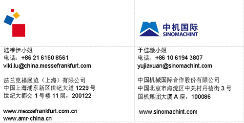法兰克福展览(上海)有限公司:+86 400 613 8585分机870 / 875