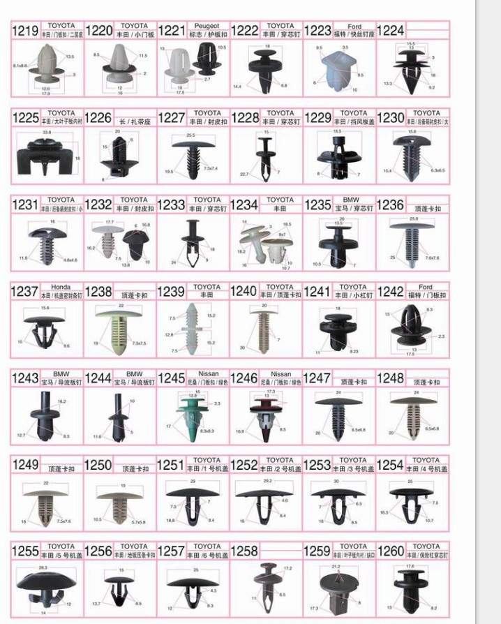 本店卡扣产品都是实物拍摄有具体尺寸亲们一定看仔细了购买哦!!主营:汽车卡扣 各地区牌照扣 尼龙扎带 喉箍 保险片大 中 ...