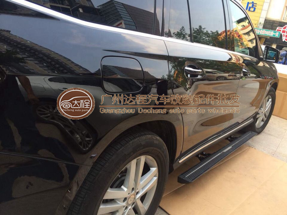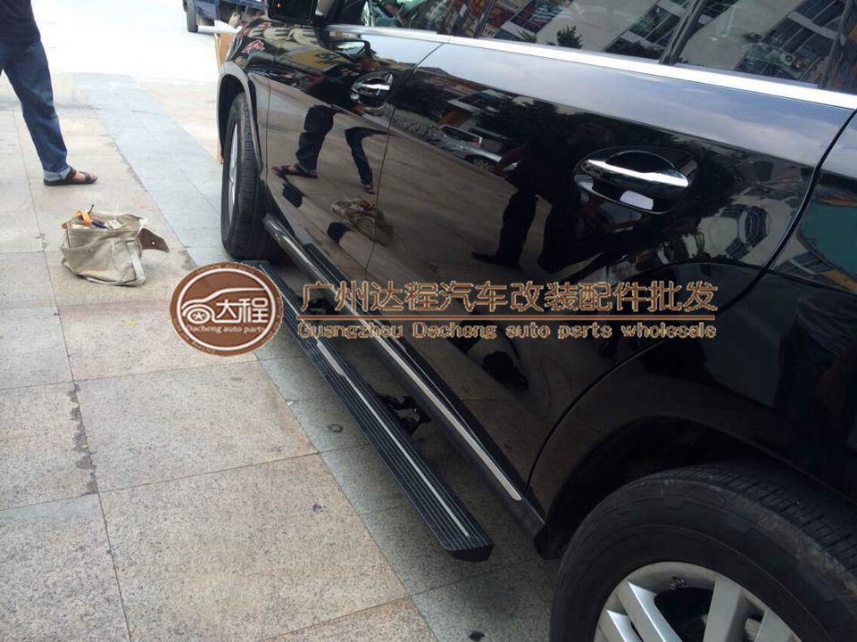 奔驰ML原装上车踏板产品功能:1:打开车门时踏板下沉伸出,展开高度降低,便于上下车、舒适又安全。2:关闭车门时踏板自动收...